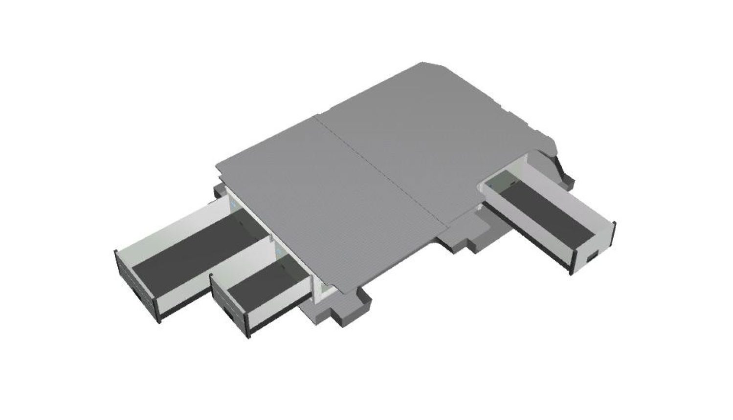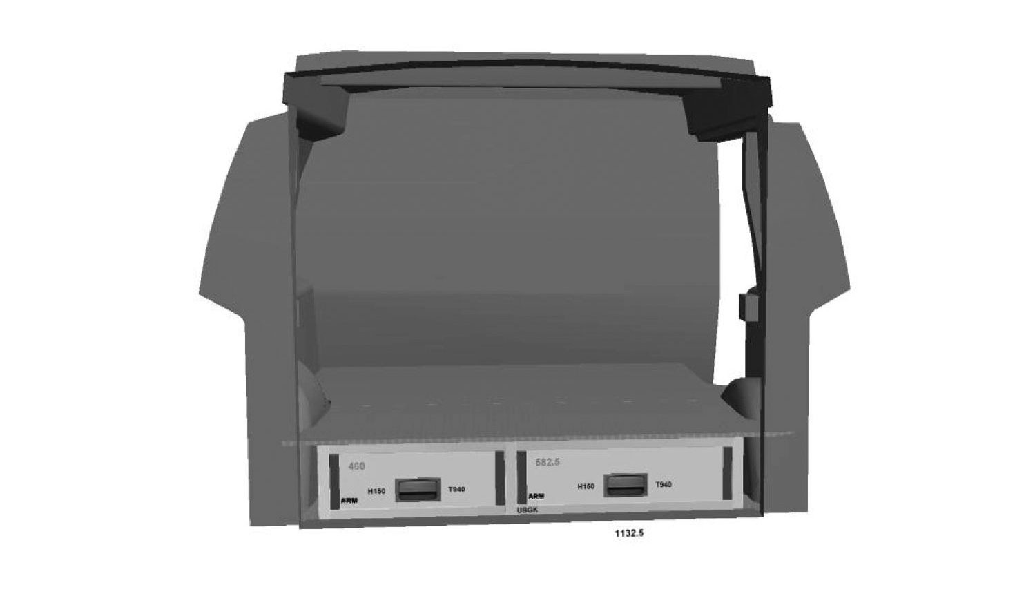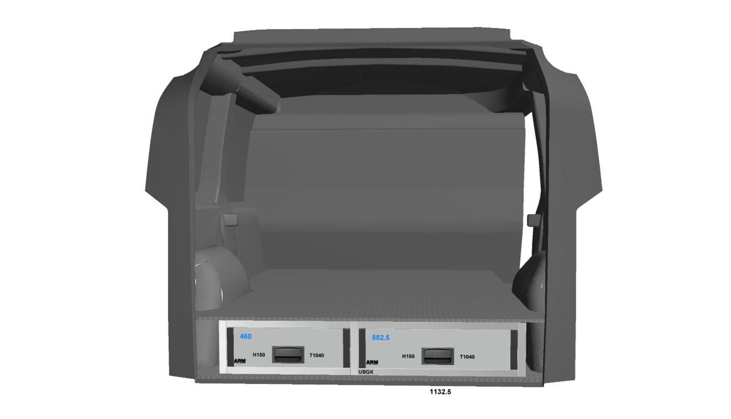Сзади: 2 выдвижных ящика (в*ш*г: 200*1132,5*1040 мм)